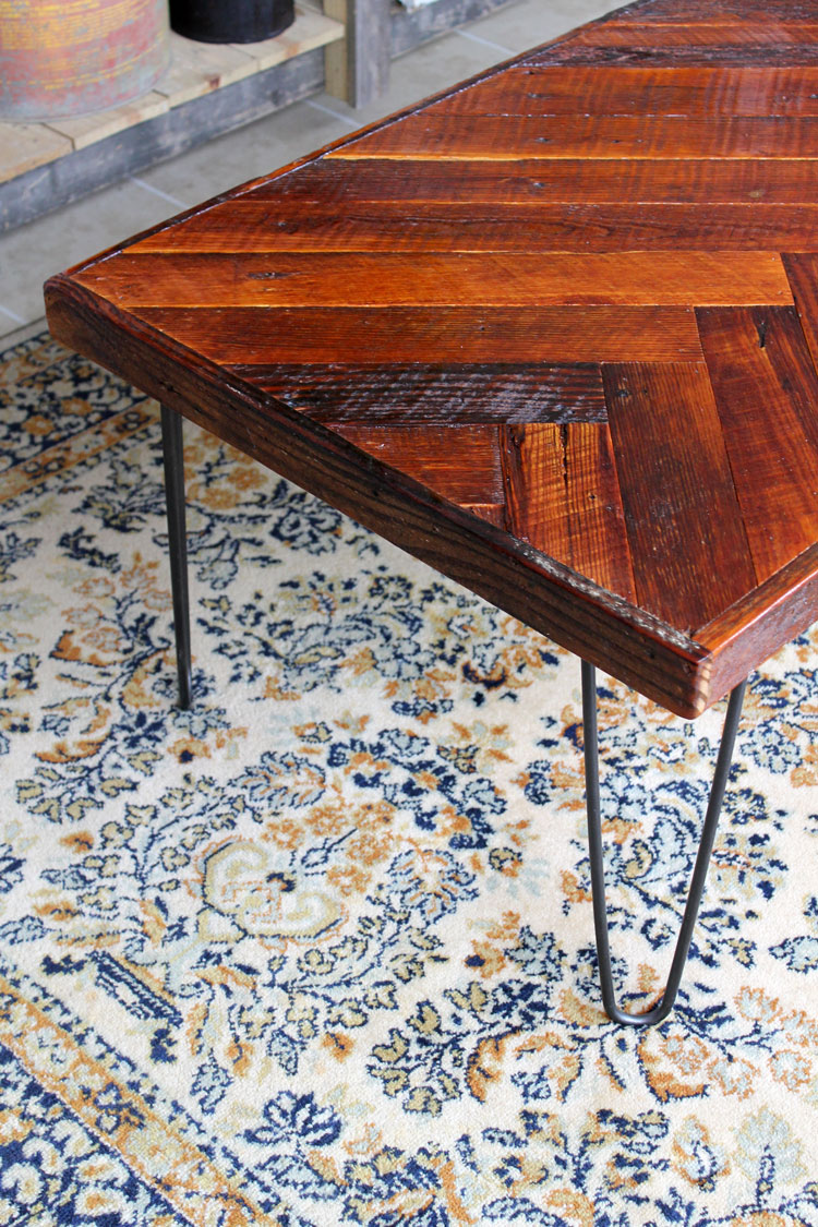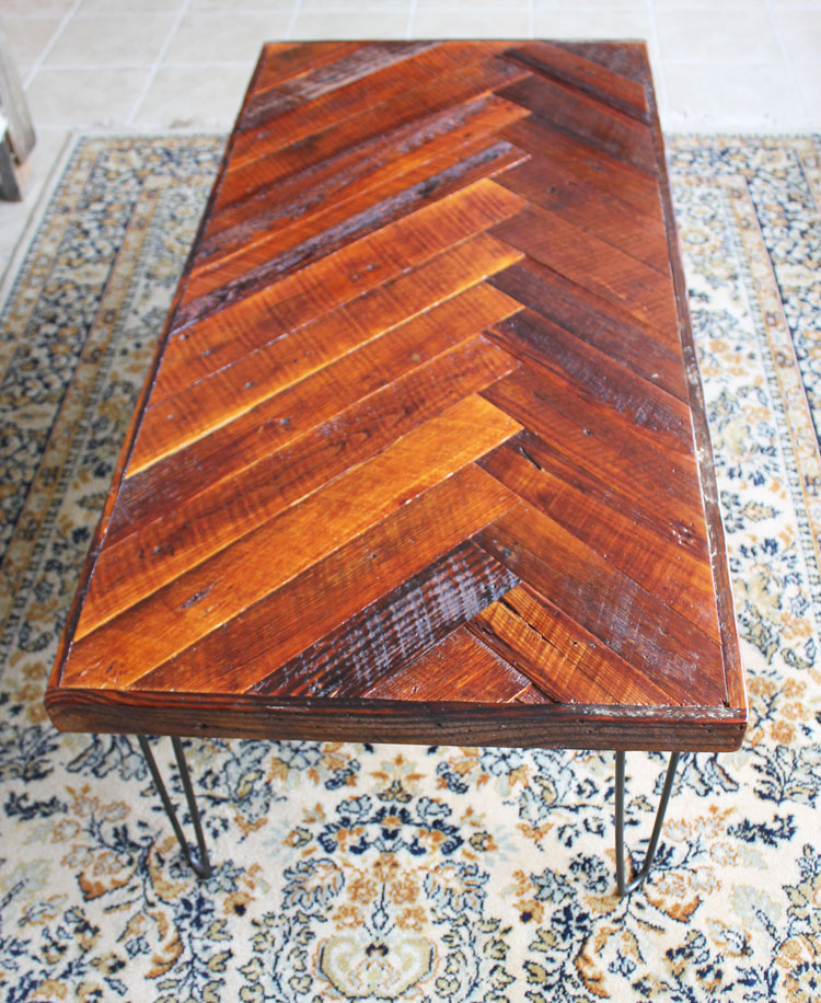 Super Easy DIY Herringbone Coffee Table with Hairpin Legs