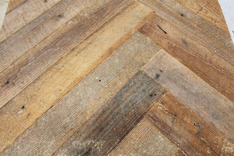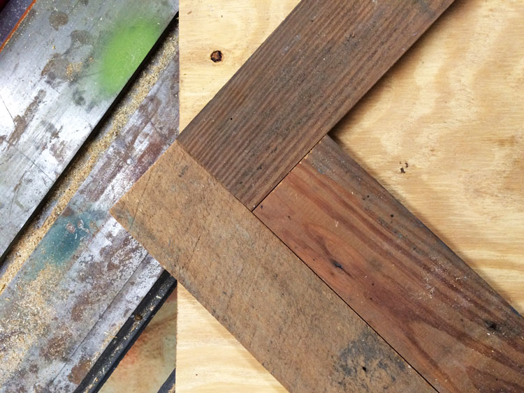 I love the herringbone pattern, too, and have made it with paint sticks to recover an end table top. It is rather simple, and simple is good!